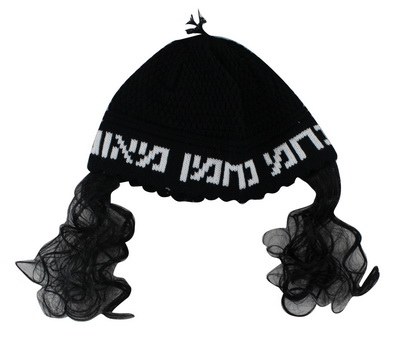 Black Na Nach Nachman Frik Kippah with Payos