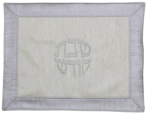 Challah Cover Vinyl White and Silver Border Textured Design