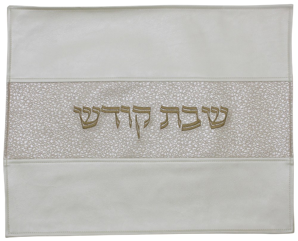 Challah Cover Vinyl White and Gold Textured Striped Pattern