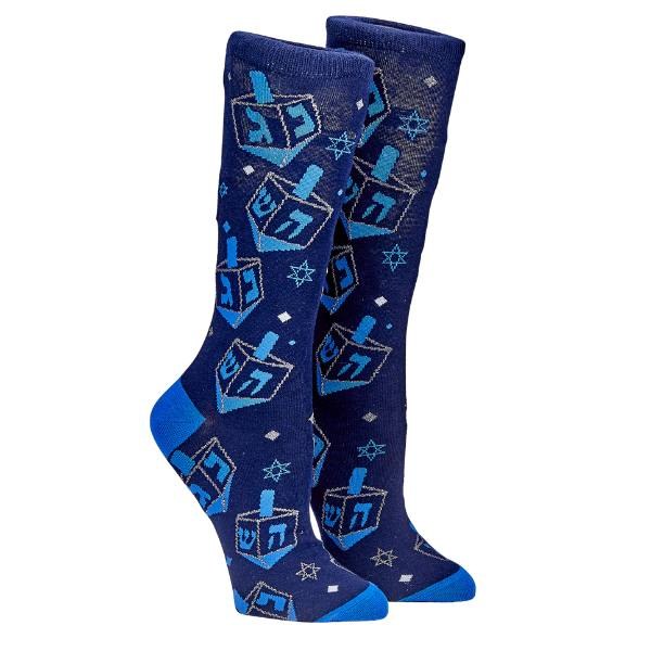 Keep your dancing feet spinning in Chanukah style with these super fun socks! Featuring the iconic Dreidel design in rich and vivid shades of blue, these thematic socks will be instant favorites for both Chanukah and all year round enjoyment.