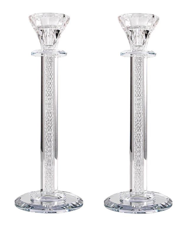 Crystal Candlesticks Inner Net in Stems Diamond Design Silver 10.25"