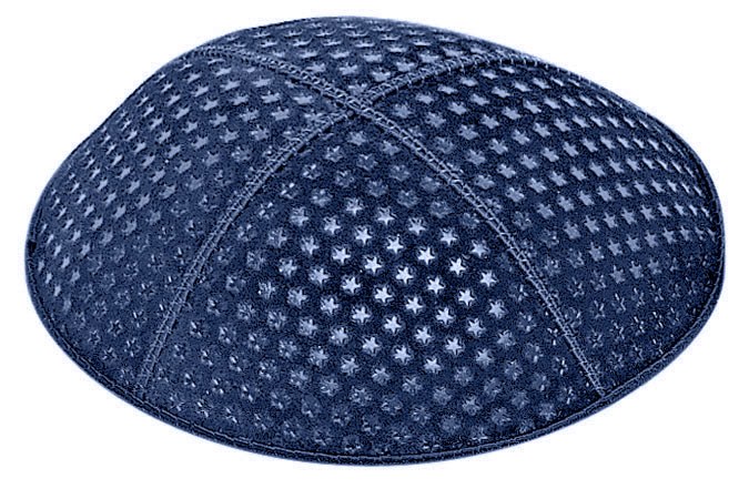 Dark Royal Blind Embossed Small Stars Kippah with Red and White Trim