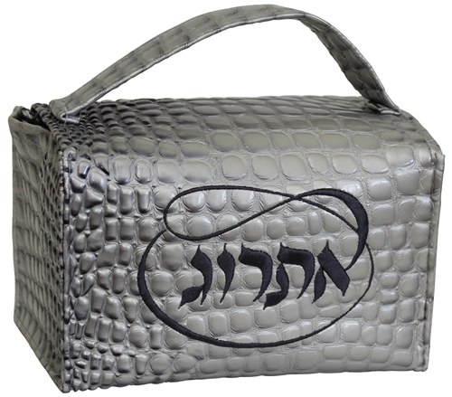 Esrog Box Holder Vinyl with Handle Grey Crocodile Design with Grey Embroidery
