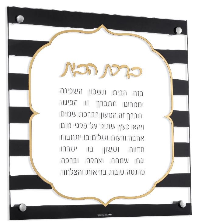 Floating Lucite Birchas Habayis Hebrew Wall Hanging Onyx Design Gold 16"