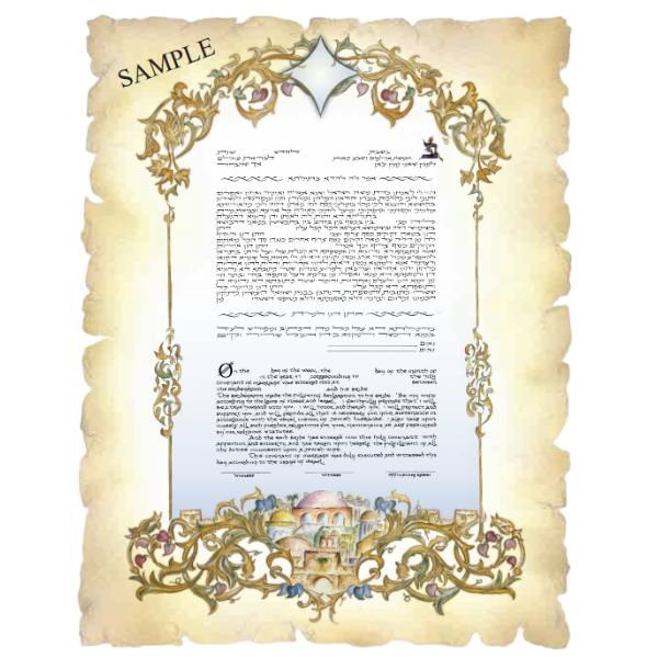 Ketubah Antique Elegance Hebrew-English 1st Marriage - Hebrew-English Personalization