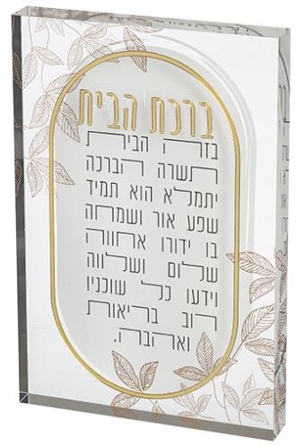 Lucite Birkas Habayis Block Hebrew Leaf Design Gold 9.5" x 6.3"