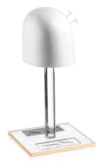 Easily secure, pin, or style your wig on the soft foam top, mounted on a gorgeous crystal-clear lucite dowel with a metallic gold or silver ring for an elegant finish. The clear square base is edged in matching gold or silver, adding a refined touch to any vanity or dressing table.