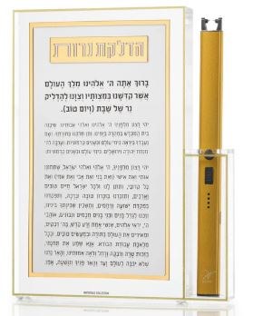 This stunning Classic 2.0 Hadlokas Neiros Block With Lighter is freestanding, sleek, and the perfect practical addition to your Shabbos candle lighting. Combining timeless elegance with a touch of freshness, it features a crisp white background set against chic, luxurious lucite for a modern yet classic look. Metallic and mirrored details elevate the design, creating an easy-to-read and truly gorgeous display.