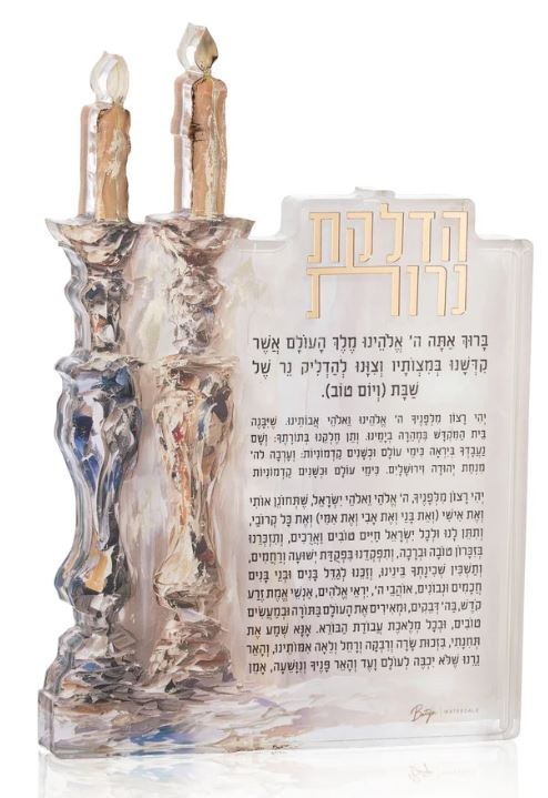 Lucite Hadlokas Neiros Sculpture Painted Artwork Hebrew Candlestick Design