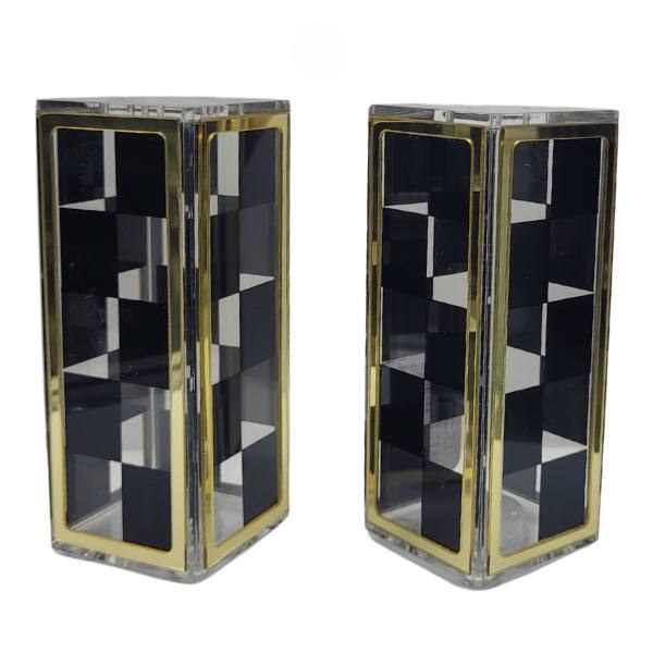 Lucite Salt and Pepper Shaker Set Checkerboard Design Gold Accent