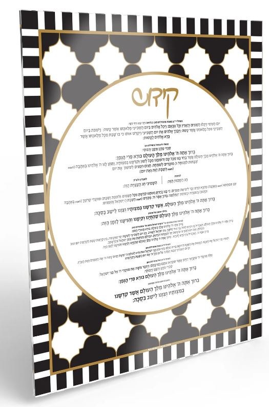 These beautiful exquisite Onyx Sukkah Decorations are printed on white lucite with sophisticated black and white color scheme and gold accent details. This will take your Sukkah to new levels! Buy one or the whole set.
