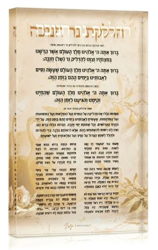 Lucite Table Top Chanukah Brachos Block Painted Artwork by Batya Hebrew Gold 5" x 8"