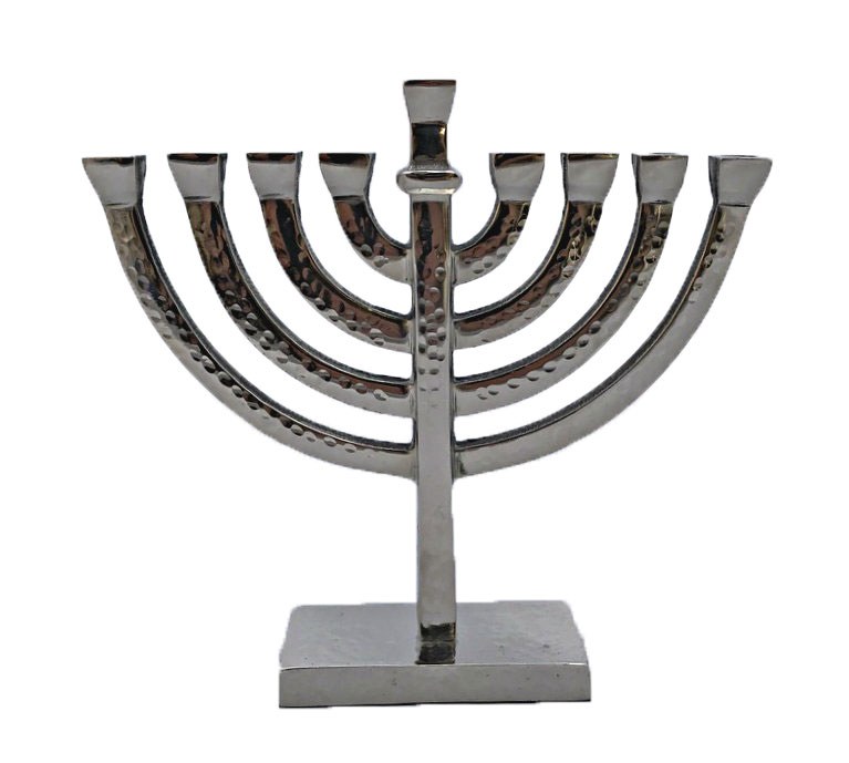 This lovely, sophisticated Menorah was made in a classic, creative style. The candleholders appear in a row with the Shamash raised in the center.