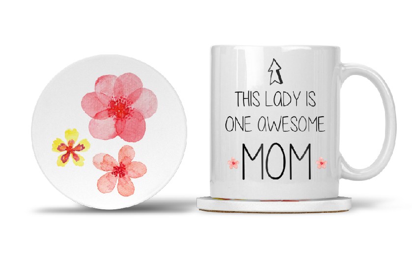Mom Mug with Matching Coaster This Lady is One Awesome Mom 11oz