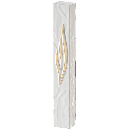 Polyresin Mezuzah Case Rectangle Shape Textured Stone Look Gold Shin White 15cm