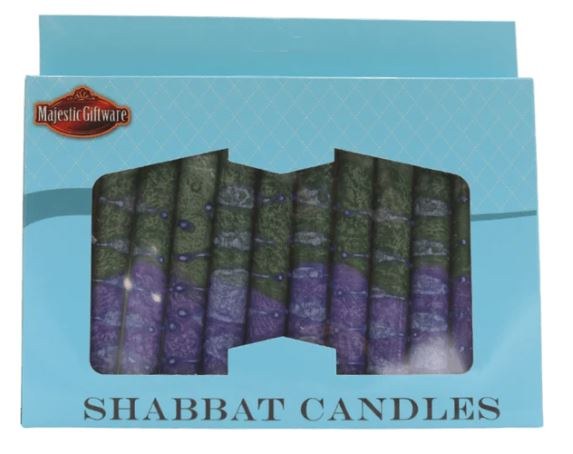 Shabbos Candles Handcrafted Stripe Design Sunrise Green 5.5" 12 Count