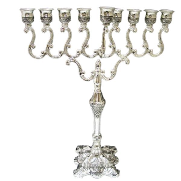 Silver Plated Oil Menorah Traditional Style 16"