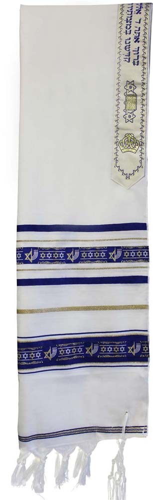 Tallis Wool Size 36 Stars of David and Menorah Motifs Blue and Gold 36" x 72"