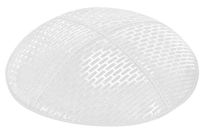 White Blind Embossed Brick Kippah with Trim