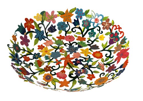 Yair Emanuel Bowl Small Laser Cut Hand Painted Flowers Design