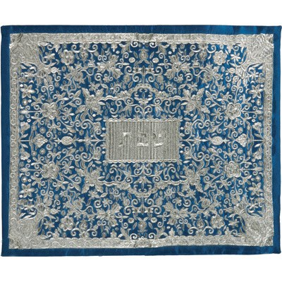 Yair Emanuel Full Embroidered Challah Cover Blue and Silver