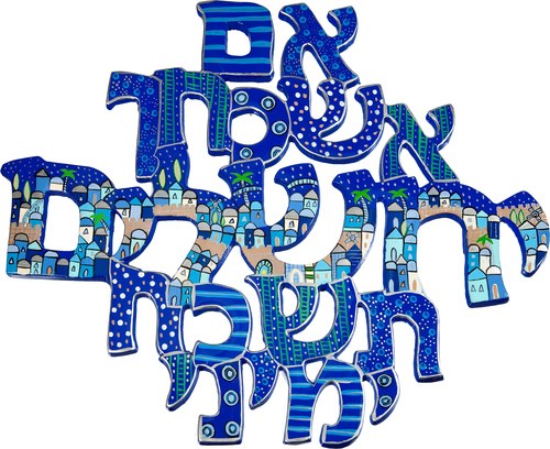 Yair Emanuel Laser Cut Hand Painted Blessing - Blue Im Eshkachech