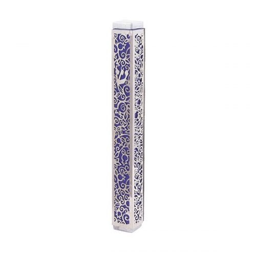 Yair Emanuel Mezuzah Case Anodized with Metal Cutout Pomegranate Design Purple 15cm